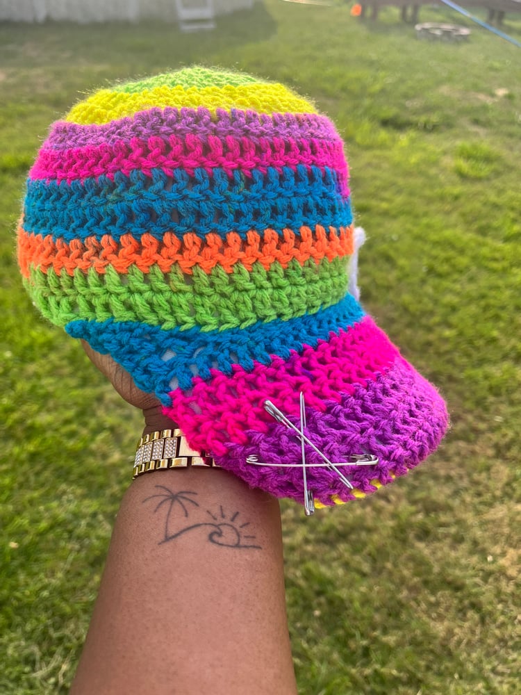 crochet multi colored baseball cap